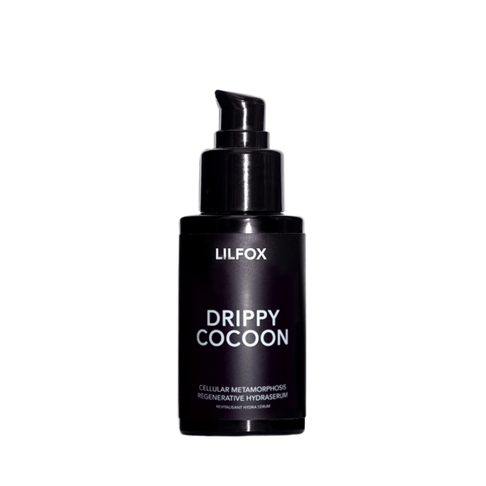 Was bitte ist denn jetzt ein Drippy Cocoon? - Fragt ihr mich jetzt. Hab ich mich auch gefragt. Und, bitteschön und voilà und tadaa: es ist ein Serum, aber auch mehr als ein Serum, quasi ein Treatment für jeden Tag. Wofür? Für pralle, elastische Haut und eine gesunde Hautbarriere. Die Textur ist etwas dicker, milchiger, als die von dem von uns allen heißgeliebten Flower Goo (weshalb ihr den Cocoon auch danach verwendet!). Nach regelmäßiger Anwendung soll die Haut satter, glatter und straffer werden. Womit? Mit Exosomen (HA! HA! Alle Newsletter-Leser*Innen wissen, wieso mich das so freut ;-), das sind pflanzenbasierte Stammzellenbotenstoffe (hier aus Goji Beeren), die unsere müden Zellen anregen sollen, damit die mit zunehmendem Alter nicht einschlafen. Die Zellkommunikation wird verbessert und dadurch die Spann- und Strahlkraft der Haut erhöht. Klinisch erwiesen ist auch, dass sie feine Linien glätten und die Feuchtigkeitsversorgung verbessern. Wie auch in den meisten anderen Lilfox-Produkten spielen hier fermentierte Stoffe ebenfalls eine wichtige Rolle - hier aus Hafer, Cordyceps und Silberohrpilz (das pflanzliche Hyaluron). Polysaccharide wirken aufpolsternd, Süßholz wirkt Pigmentierung entgegen, Löwenmähne (schon der dritte Vitalpilz, ich flippe ja aus!) versorgt die Haut u.a. mit Beta-Glucan - das wirkt gegen Schäden durch oxidativen Stress, fördert die Regeneration und klärt den Teint.
